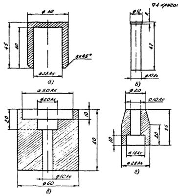 а - стакан; б - шток; в - корпус; г - втулка