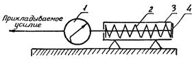 1 - динамометр; 2 - испытываемая пружина; 3 - направляющая трубка; 4 - перемещающийся шток