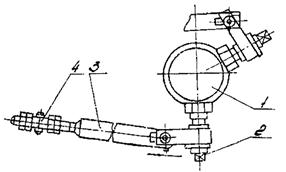 1 - вал; 2 - палец; 3 - тяга; 4 - вилка