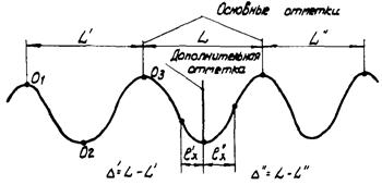 Показателем изменения скорости является прирост Δ длины пролета при переходе от рассматриваемого пролета к соседнему. Если длина данного пролета L, а длина соседних пролетов L′ и L″, то Δ′ = L′ - L и Δ″ = L″ - L. Если соседний пролет больше (L′ > L или L″ > L), то прирост Δ имеет знак плюс и наоборот. На длине L мм пролета скорость изменяется примерно на величину Δ/L, а на расстоянии lx от дополнительной отметки скорость движения может быть определена как