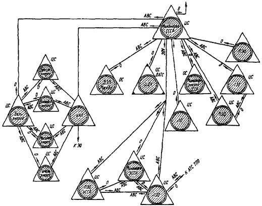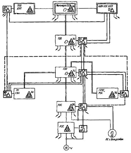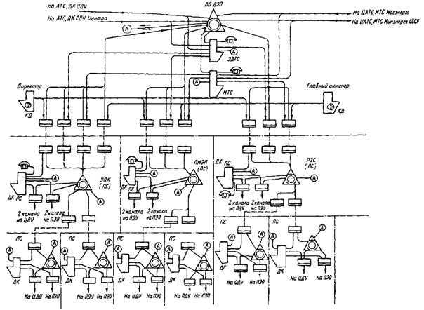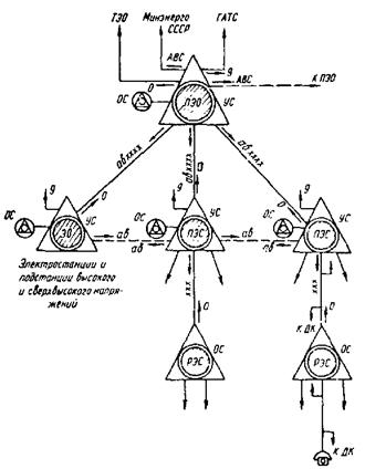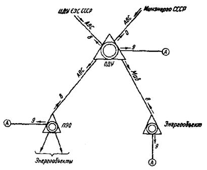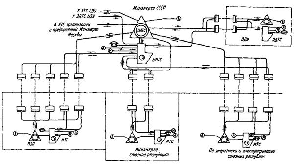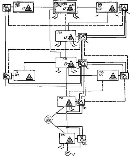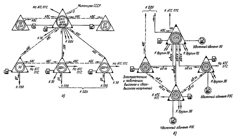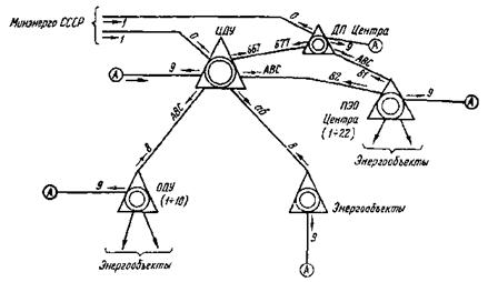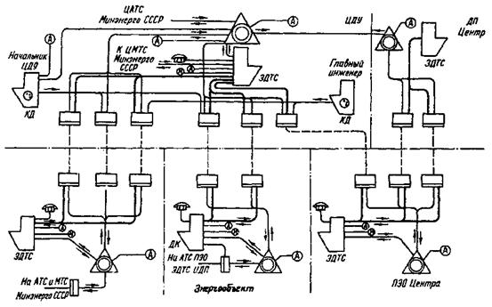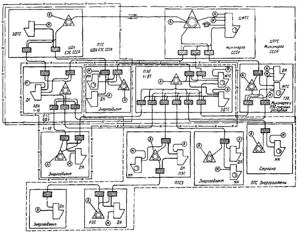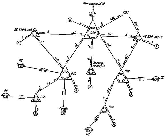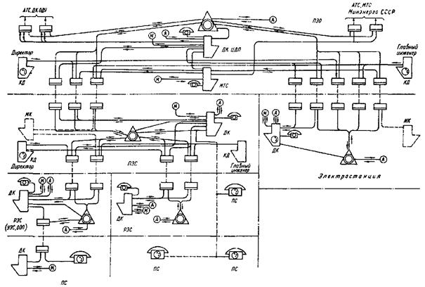 Рис. 1. Структурная схема комплексных производственных телефонных сетей Минэнерго СССР: