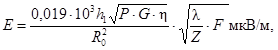 Примечание. в - половина ширины улицы, где установлена приемная антенна.
