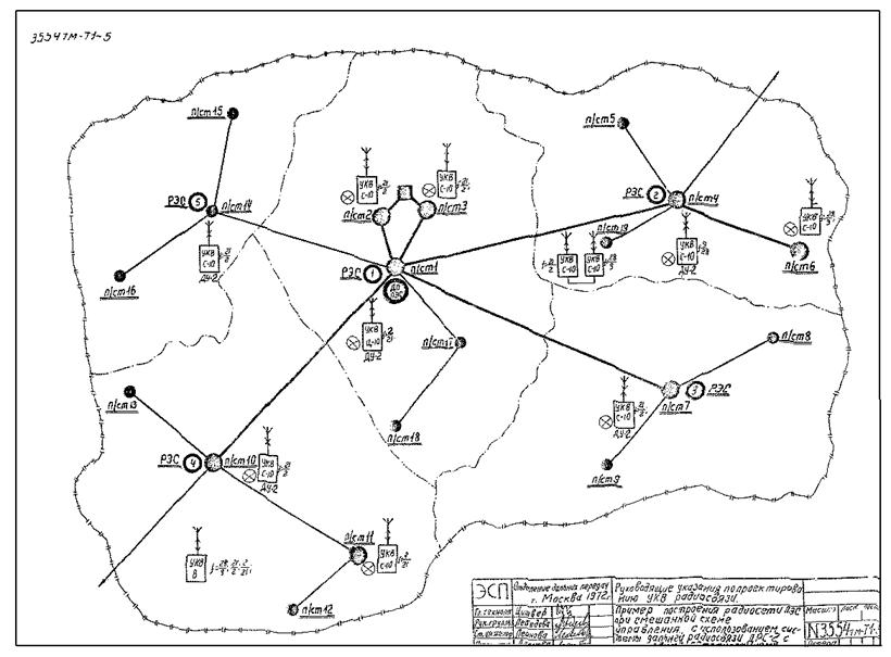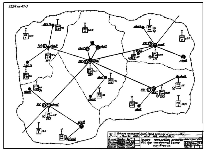 1.8. В качестве основного звена для организации комплексных радиосетей принимается РЭС, поскольку расстояние от его центра до наиболее удаленных точек обслуживания в большинстве случаев соответствует дальности действия УКВ аппаратуры и, следовательно, для обслуживания всей территории достаточно одной сети.