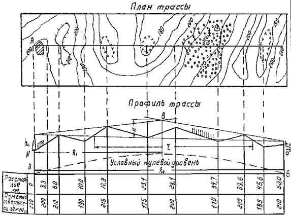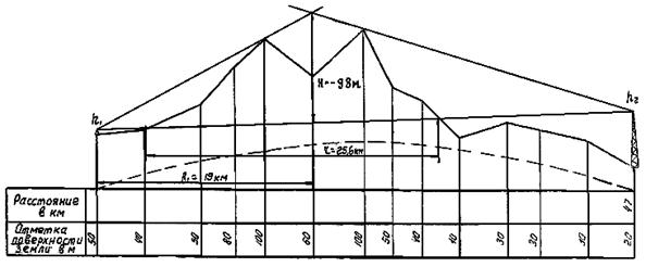 Рис. 14 Профиль трассы радиоканалов к примеру 1