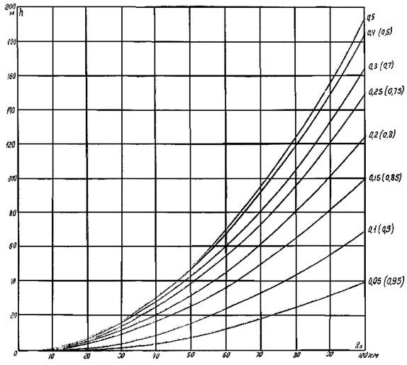 h = (4/51)R02K(1 - K), где R0 - в километрах; h - в метрах; K = R1/R0
