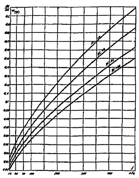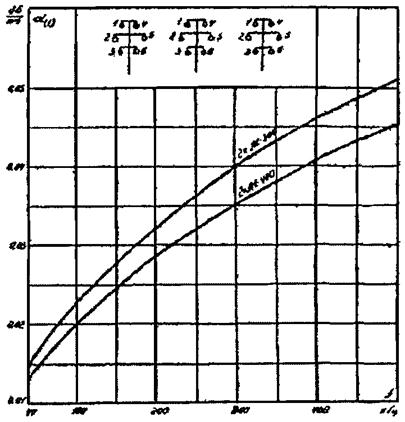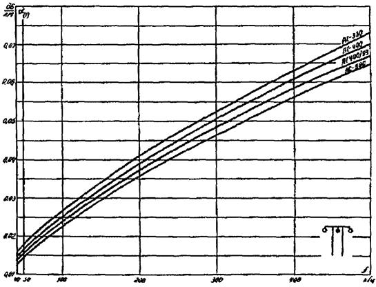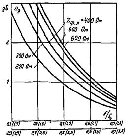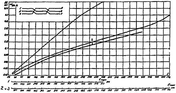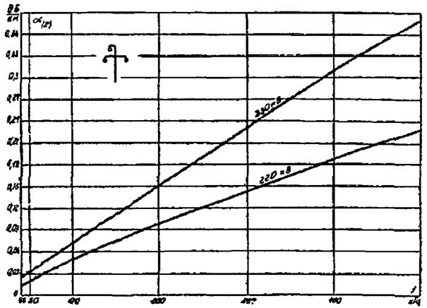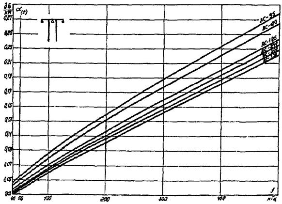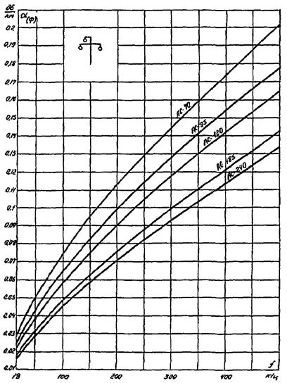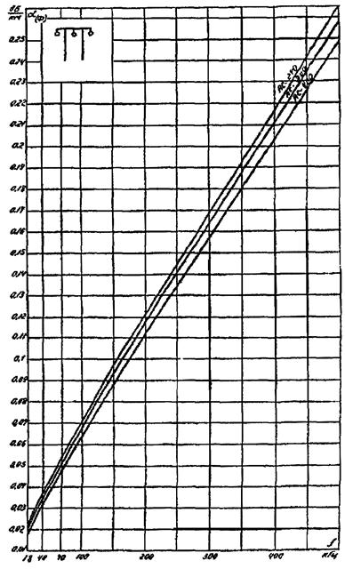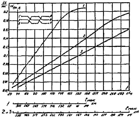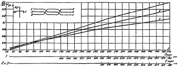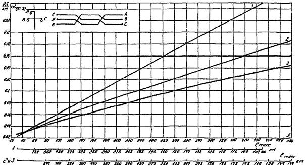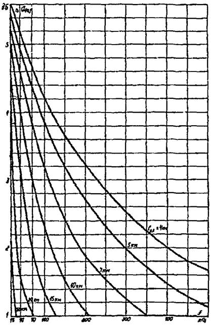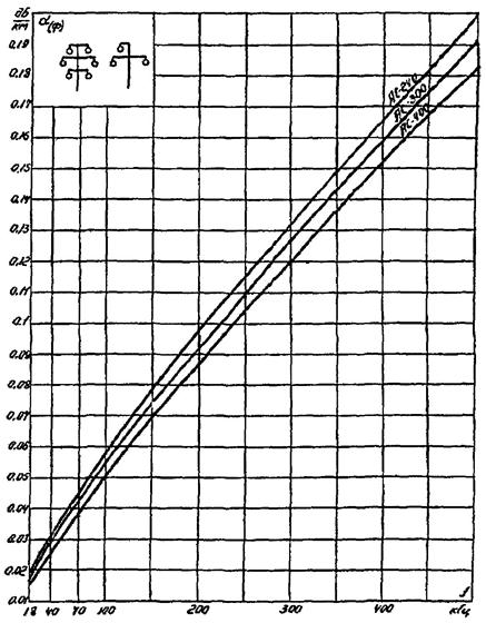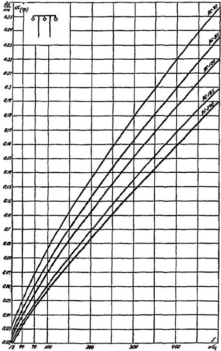 1.2.1.* Значение наибольшей возможной частоты канала fмакс зависит от напряжения ВЛ, расположения фаз и наличия транспозиций, параметров ВЧ аппаратуры и схемы ее присоединения к ВЛ, сложности ВЧ тракта, района по гололеду, в котором расположена трасса ВЛ. С учетом этого оно определяется по значении наибольшего возможного километрического затухания линейного тракта, которое допускается для данной ВЛ (рис. 1-1 ÷ 1-21):