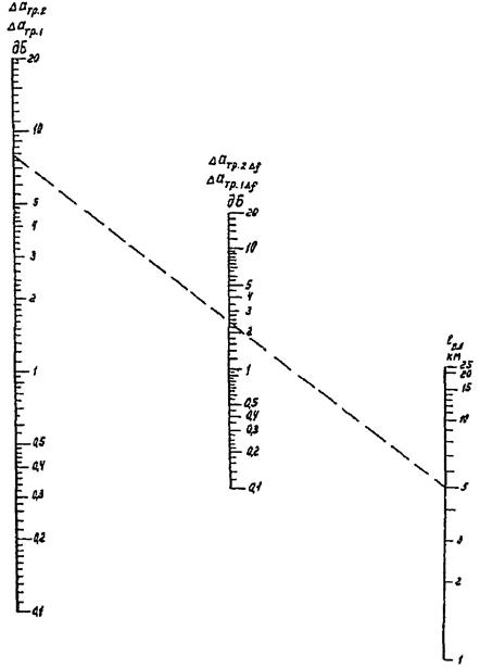 3) определяется минимальный разнос частот между проектируемым и существующим (или ранее запроектированным) каналами, при котором обеспечивается работа каналов без взаимных помех в выбранном свободном участке диапазона частот. Минимальный разнос частот определяется согласно рекомендациям разд. 1.3 и 1.4;