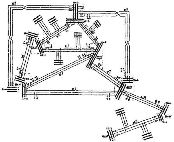 Методика, изложенная в ч. I Руководящих указаний, универсальна и позволяет решать практические задачи выбора частот. При использовании ее исходные материалы оформляются в виде скелетной схемы ВЧ каналов, нанесенной на схеме электрических сетей и графика частот.
