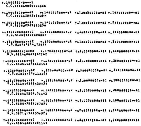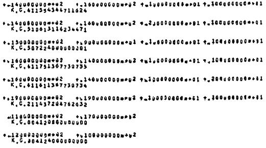 Таким образом, в начале сводной колоды ставятся массивы, неизменные во всех расчетах по программе: программа, массивы К1, К2, ZШ, АП, затем переменная часть сводной рабочей колоды: числа А, В, Р, L, G, T, F, пробитые каждое на своей перфокарте со своей контрольной суммой, и массивы ОБ, ЭM, ML, MK.