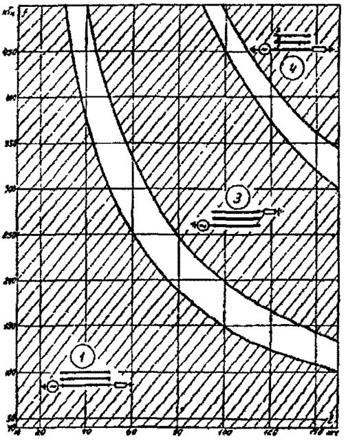 Если неизвестны марка проводов и расположение фаз ВЛ, то значение fмакс ВЧ канала по такой ВЛ рекомендуется определять по графикам для линий с горизонтальным расположением фаз с проводами: