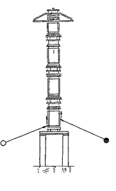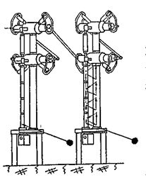 4.6. В случае, когда изоляционная конструкция полюса аппарата составлена из 3 или 4-х колонок, обмыв таких конструкций производится следующим образом. Каждый оператор выбирает свою позицию (с учетом направления ветра) так, чтобы он видел одновременно все колонки изоляционной конструкции опоры, в результате угол между струями воды и составит порядка 120°. Операторы одновременно начинают мыть изолятор, перемещая струю от нижнего фланца до середины изолятора (если конструкция собрана из изоляторов типа ИОС или аналогичных габаритов), затем перекрывают воду клапанами, смонтированными в стволах, опускают стволы к нижнему фланцу соседнего изолятора, открывают воду и обмывают изолятор также до его середины, снова перекрывают воду, опускают стволы, "нацеливаясь" на нижний фланец третьего изолятора, открывают воду и обмывают этот изолятор весь снизу-вверх. Затем поочередно каждый раз, перекрывая воду, домывают верхние половинки соседних изоляторов. Таким же образом обмывается следующий "ярус" этой изоляционной конструкции, затем следующий и так до верхнего "яруса".