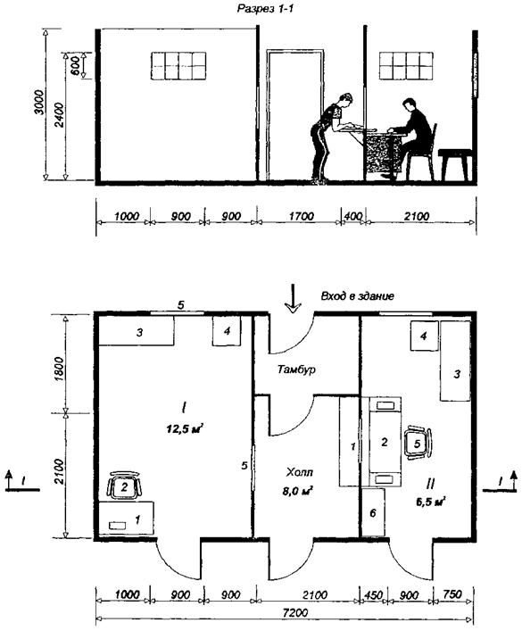 Для групп помещений проектируются удобные связи с помещениями, расположенными рядом с вестибюлем: охраны, санпропускником и помещением общественного питания (рисунок 3.1).