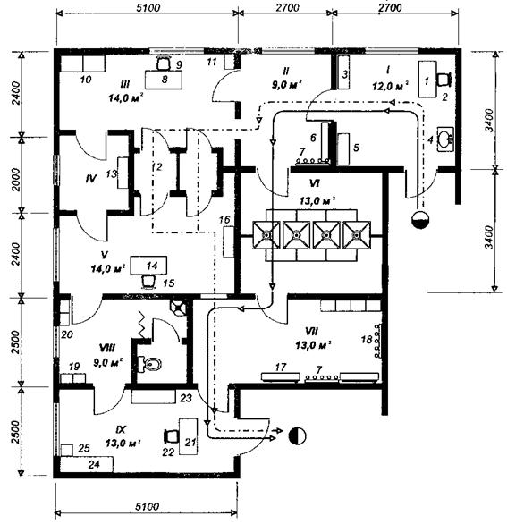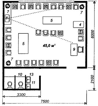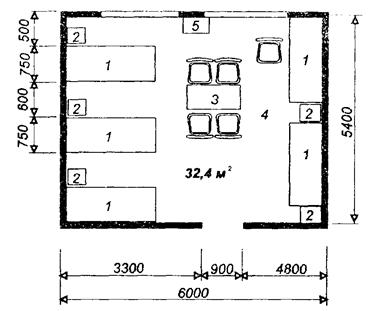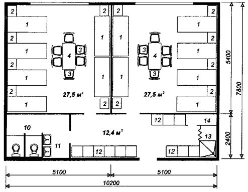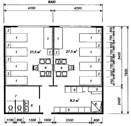 Требования к площадям и оборудованию этих помещений представлены в таблицах В.1 - В.4 и на рисунках 3.2, 3.3.
