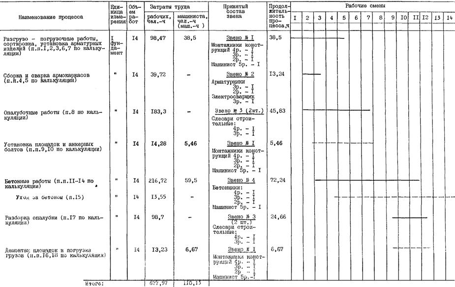 Параметры конструкций (размеры, армирование, расход материалов) приняты в технологической карте применительно к реальным рабочим чертежам института Промстройпроект.