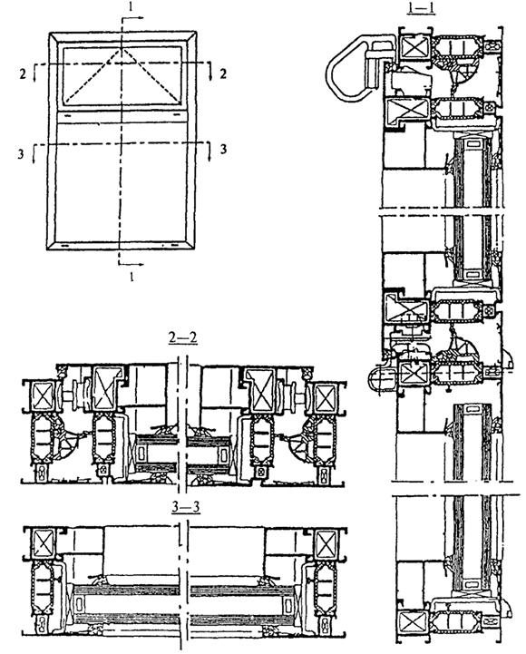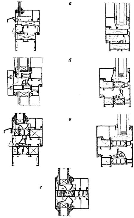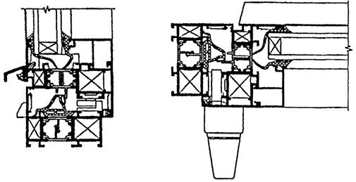 Рисунок А.5 - Примеры конструктивных решений узлов угловых соединений створки и коробки