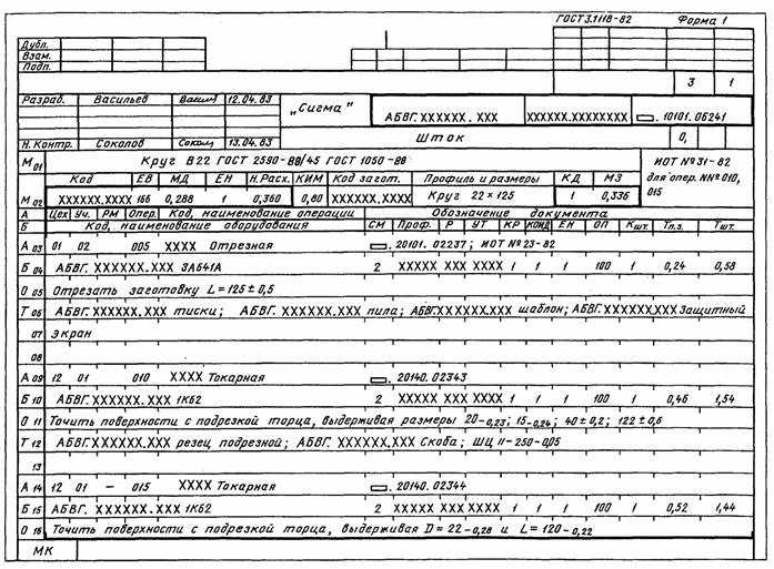 маршрутная карта (МК);