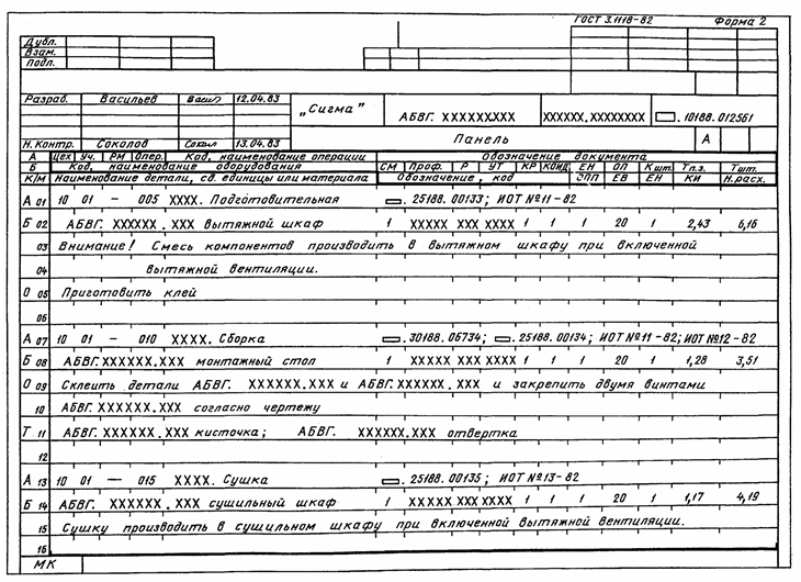 2.3. В МК, КТП, КТТП, ОК, КТО, ВОП следует указывать средства индивидуальной защиты (спецодежда, спецобувь, защитные очки и др.) или обозначения (номера) комплектов средств индивидуальной защиты, в соответствии с порядком, установленным в отрасли или на предприятии (в организации), средства коллективной защиты работающих, используемые непосредственно на рабочих местах (ограждения, защитные экраны, вентиляционные устройства и др.), а также средства технологического оснащения, обеспечивающие безопасность труда (пинцеты и щипцы для удаления деталей из зоны обработки, крючки для отвода и удаления стружки и др.), которые не являются составной частью используемого оборудования или технологической оснастки, но применяются совместно с этими средствами технологического оснащения, если они не указаны конкретно в ИОТ.