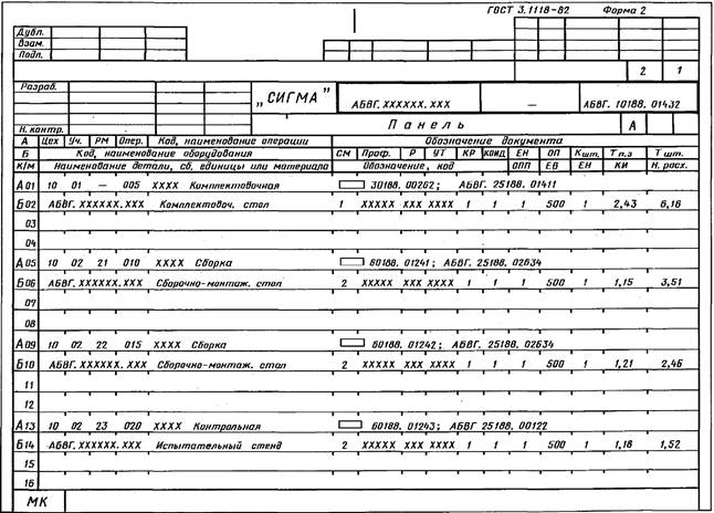 2.2. При маршрутном и маршрутно-операционном описании технологического процесса МК является одним из основных документов, на котором описывается весь процесс в технологической последовательности выполнения операций.