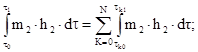 2.9. В случае, когда по конденсатопроводу производится возврат конденсата в прерывистом режиме, измерения количества конденсата и тепловой энергии, содержащейся в конденсате, прошедшем по конденсатопроводу, можно проводить только в интервалах времени прохождения конденсата по конденсатопроводу, тогда интегралы, содержащие члены m2h2, представляют в виде суммы интегралов, например