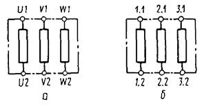 1) перед цифрами по п. 4.4 помещают буквы (например, U, V, W) в соответствии с фазами трехфазной системы (черт. 3а);