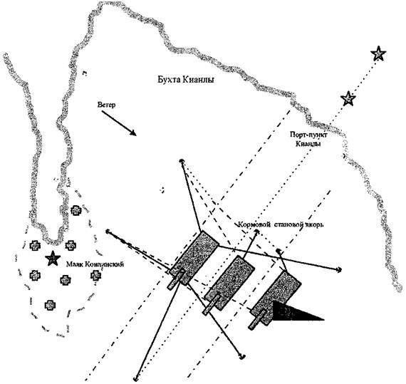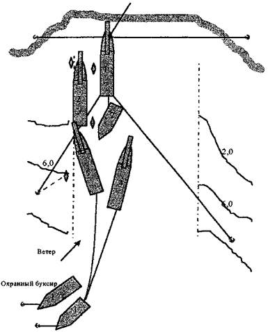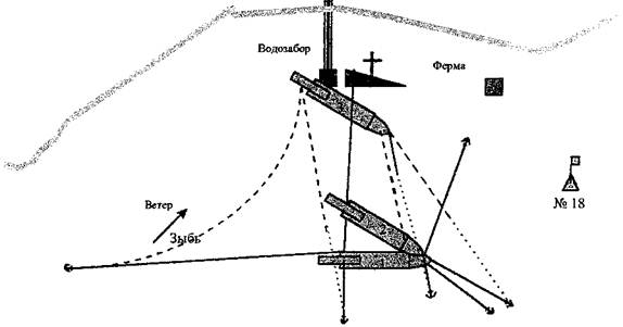 Рисунок 3 Схема положения земснаряда «Фрунзе» во время аварии