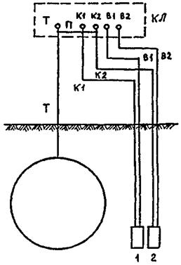 Сопротивление соединительного медного провода длиной lсп = 10 м (ГА размещен в середине между отводами) и сечением S = 5 мм2 вычисляем по формуле (У.7):