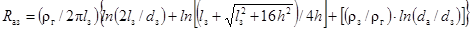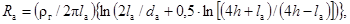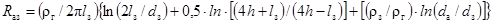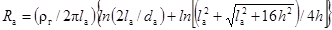 Rаз = [10/(6,28´0,7)] {ln[(2´0,7)/0,2] + 0,5ln[(4´1,85 + 0,7)/(4´1,85 - 0,7)] + (2/10)ln(0,13/0,2)} = 4,45 Ом