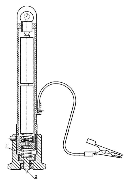 1 - пружина; 2 - рабочая точка (стальной шарик диаметром 1 мм)