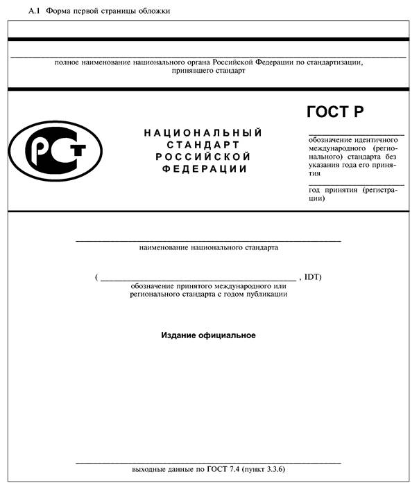 Национальный стандарт, идентичный соответствующему международному или региональному стандарту, оформляют в соответствии с ГОСТ Р 1.5 (подраздел 8.1);