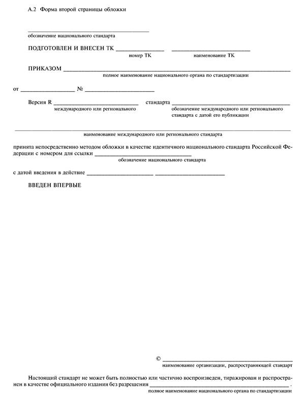 При принятии международного или регионального стандарта в качестве национального стандарта методом обложки соответствующий ТК оформляет первую и вторую страницы обложки в соответствии с приложением А.