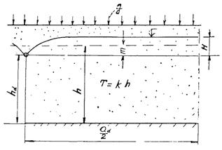 dh - заглубление дрены относительно верхней границы потока;