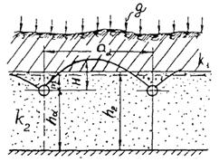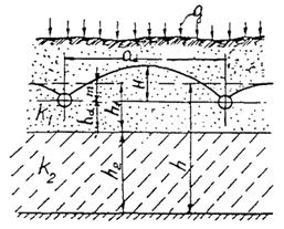 qн - двухсторонний приток к дрене при напорном режиме;