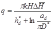 H - превышение уровня подземных вод в междренье над уровнем воды в дрене (превышение уровня подземных вод посередине между скважинами над уровнем воды в них);