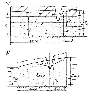 i1; i2 - уклон потока подземных вод соответственно справа и слева от дрены в естественных условиях;