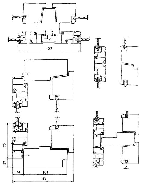 Рисунок А.3 - Примеры конструкций угловых соединений алюминиевых створок