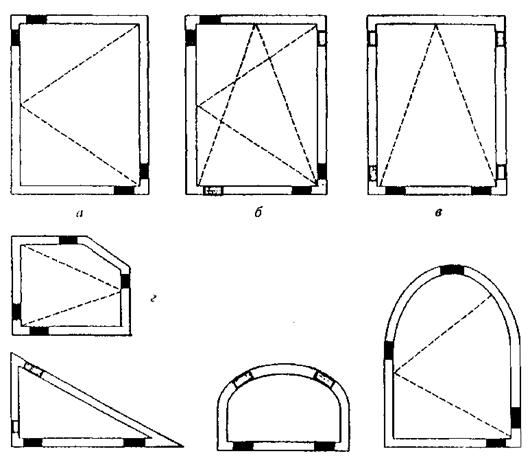 Рисунок А.4 - Примеры конструкций угловых соединений деревянных створок и коробки