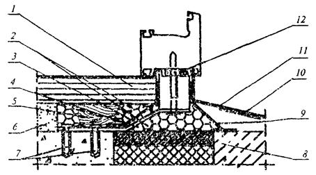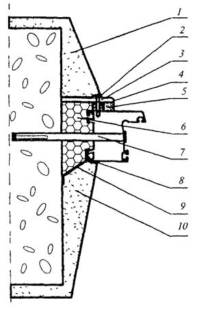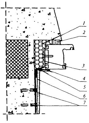 - узла сопряжения с перемычками оконного проема (вертикальное сечение);