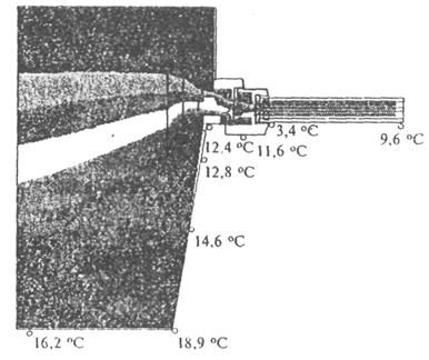 Результаты расчета представлены на рисунке Г.3 в виде распределения температур (изотерм) по сечению рассчитываемой области и значений температур внутренней и наружной поверхности в отдельных, наиболее характерных точках.