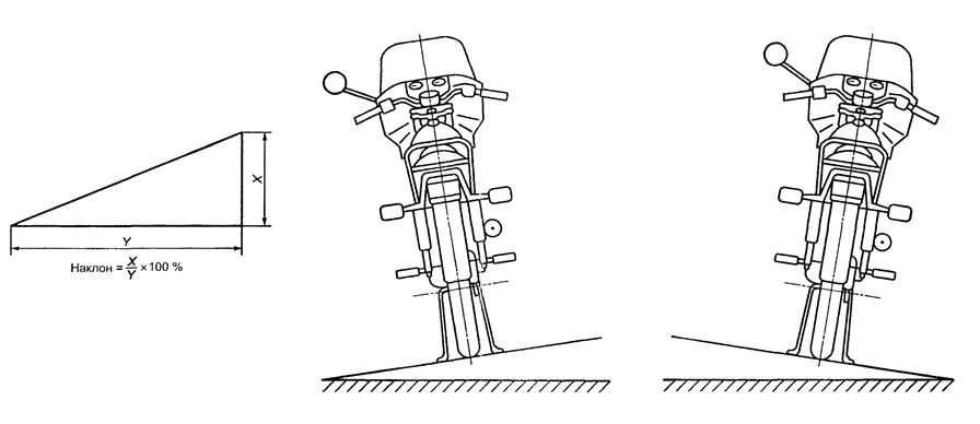 5.2.4. Поверхность установочной платформы должна обеспечивать достаточное трение, чтобы мотоцикл не скользил по опорной поверхности во время испытания на наклон или уклон.