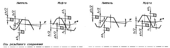 предельное отклонение головки профиля резьбы ниппеля и муфты;