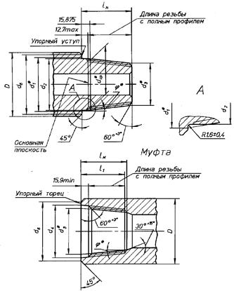 Таблица 1 - Размеры элементов резьбы профиля ниппеля и муфты
