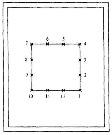 Слои стекла должны быть разрушены при помощи ударов молотка по периметру квадратного отверстия перед применением топора. Количество ударов молотком должно быть не менее 12. Наносить удары следует в соответствии с рисунком Е.5.