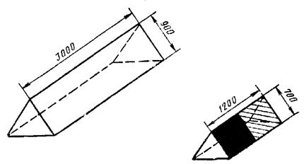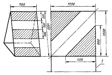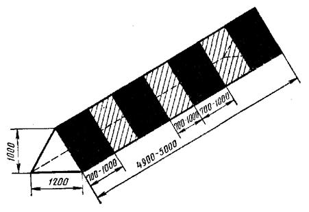 2.8. Входные знаки (черт. 5) обозначают начало и конец ГВПП, имеют форму трехгранной призмы. В сечении знак имеет форму равнобедренного треугольника с основанием 1,2 м.