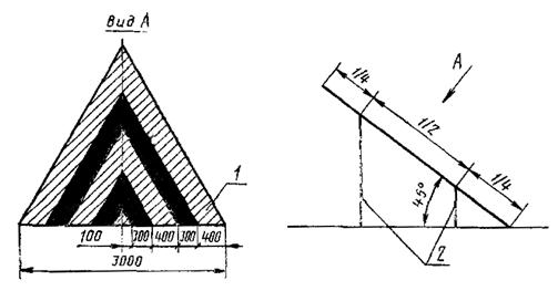 2.4. Знаки зоны приземления (черт. 3) служат для обозначения места приземления воздушных судов, имеют форму трехгранной призмы. В сечении знак имеет форму равностороннего треугольника.