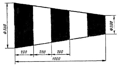 2.2. Границы ГВПП, РД, МС и перрона обозначают пограничными знаками (черт. 2) в виде усеченного конуса, призмы или флажка. Усеченный конус окрашивают чередующимися полосами красного и белого или черного и белого цвета. Нижняя полоса должна быть окрашена в красный или черный цвет. Призмы окрашивают в красный цвет.