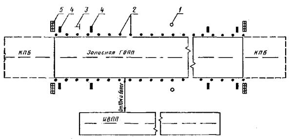 1 - пограничные знаки; 2 - посадочный знак «Т»; 3 - входной знак