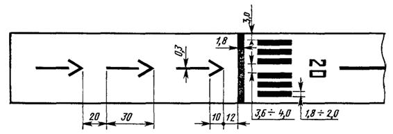 Расположение, размеры и количество маркировочных знаков на ИВПП