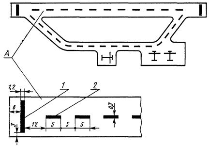 4.9. Пути движения маркируют двумя сплошными линиями, обозначающими ширину проезжей части, двухсторонние пути движения дополнительно маркируют разделительной пунктирной линией. Между стоянками самолетов предусматриваются специальные проезды, где сплошная линия прерывается и заменяется пунктирной (черт. 11).