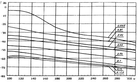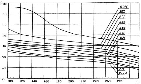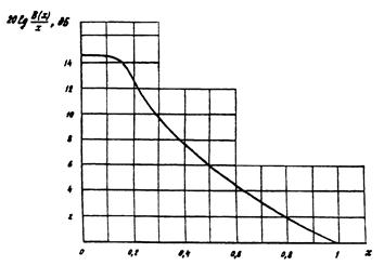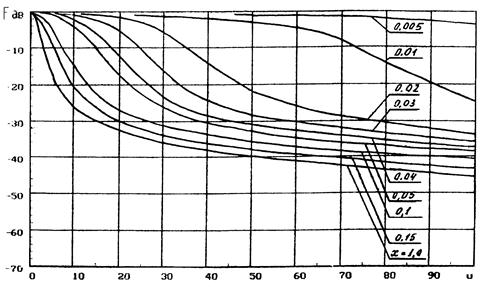 6.6.5. По графикам рис. 6 определяется функция 20lgF(u, x) = - 54 дБ.