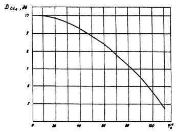 6.4.8. Угол раскрыва зеркала антенны с размерами 30´30 м2 2y0 равен 40°. По графику рис. 10 определяется DОбл, дБ:
